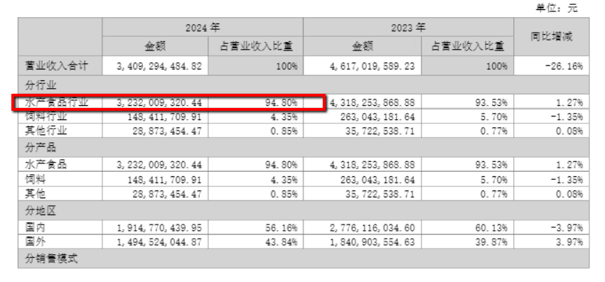 作为国内较早布局预制菜的水产企业,国联水产曾将预制菜视为“第二增长曲线”,并在财报中多次强调“产品结构向预制菜品为主的精深加工类转型”。但从实际效果来看,转型进度远不及预期。