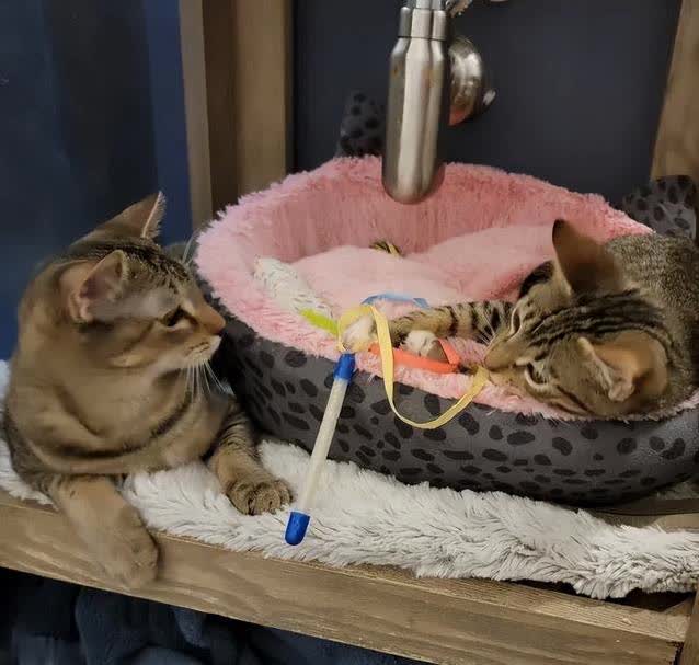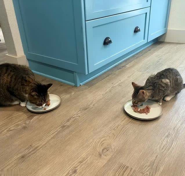 为了让哈罗德不孤单,安德莉亚把它介绍给另一只寄养猫咪卡塔拉。两只猫一开始互相盯着,像在比谁更酷。后来,它们开始追来追去,一起玩耍,成了形影不离的好朋友。看到它们在院子里跑来跑去,安德莉亚心里别提多开心了。