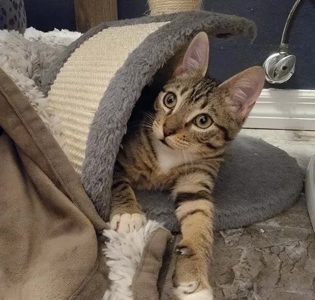 哈罗德刚来的时候胆子小,总是躲着。可没过几天,它就变了样,喜欢趴在安德莉亚腿上打呼噜,还会轻轻舔她的手。安德莉亚笑着说:“这小家伙,治好了病肯定是个大暖猫!”果然,哈罗德的性格越来越活泼,眼神里满是信任。