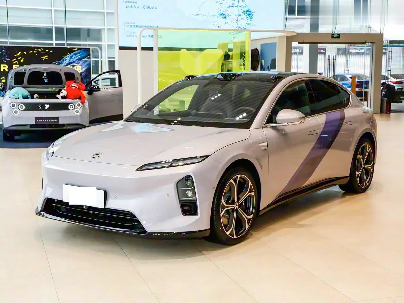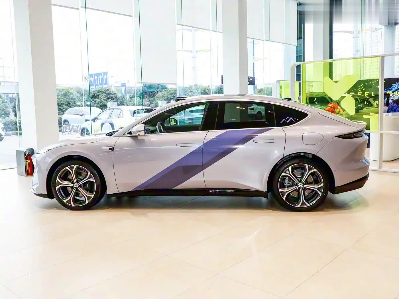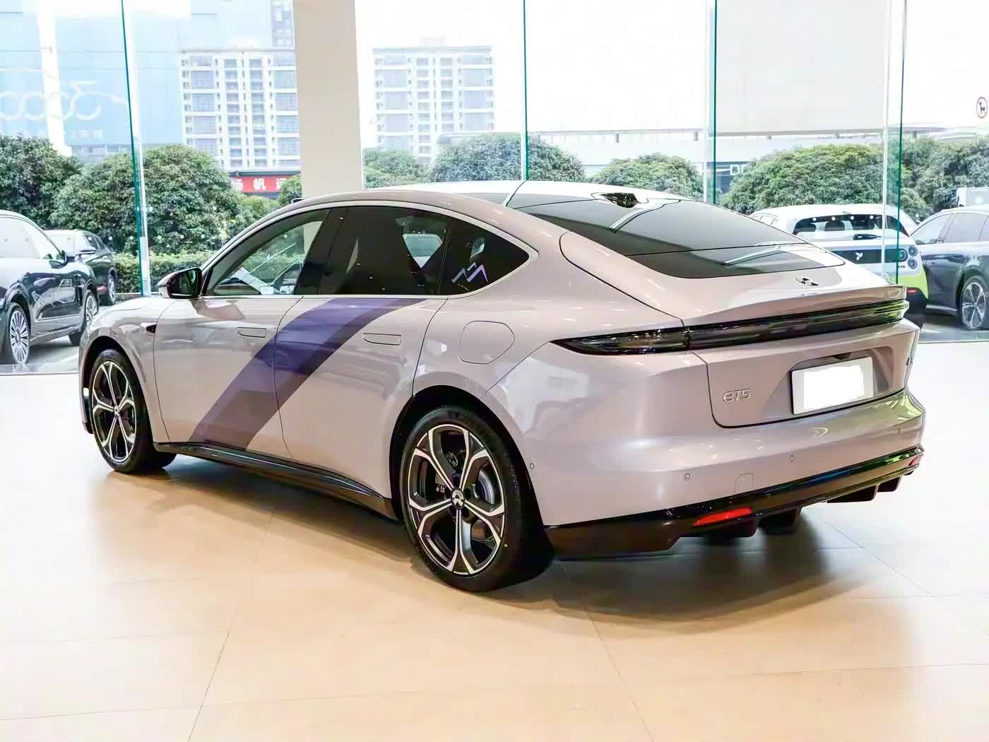我们首先来看新车的外观设计方面,前脸设计是ET5远空套装的情感入口。分体式细长日行灯如星际航标般刺破黑暗,Double-Dash光带与焕新ADB智能大灯组成动态光语系统,支持迎宾、充电等6种交互模式。最惊艳的当属远空紫车漆——采用多层珠光漆工艺,在阳光下呈现从紫罗兰到深空蓝的渐变效果,灵感源自新疆阿勒泰雪山日落的紫霞奇观。前舱盖的雕塑感筋线强化力量感,Shark Nose鲨鱼鼻设计将风阻系数压低,兼顾美学与空气动力学。特别版专属的闪电气门芯帽与20英寸花竞轮毂,在静止时已传递出蓄势待发的动势。